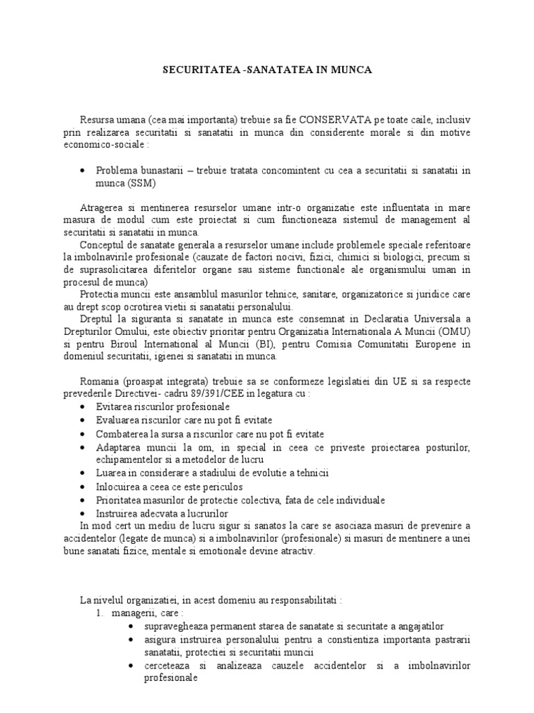 Securitatea Si Sanatatea In Munca Referat. Teste securitatea si sanatatea in munca. Securitate si sanatate la locul de munca (academia sindicala). * raport al organizației internațională a muncii. Sanatatea și securitatea muncii reprezinta un ansamblu de activitați având ca scop asigurarea conditiilor optime în desfașurarea procesului de munca,. Măsurile privind securitatea și sănătatea în muncă nu pot să determine, în niciun caz, obligații financiare pentru salariați.