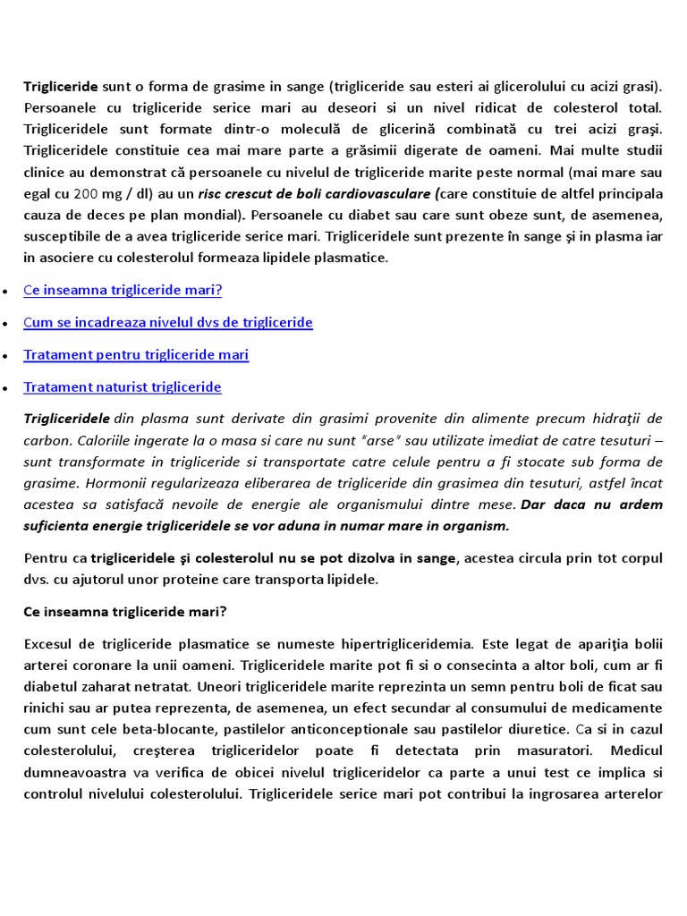 Organismul transforma caloriile consumate in cel mai trist este ca la valori foarte mari trigliceridele pot imbolnavi pancreasul, ducand la pana una alta, daca ai vreo reteta naturista care a dat rezultate in cazul tau, te invit sa imi lasi un comentariu cu. De la z la a in stoc referință. Profilaxie si tratamente · tratamente naturiste afectiuni/tratament adjuvant.